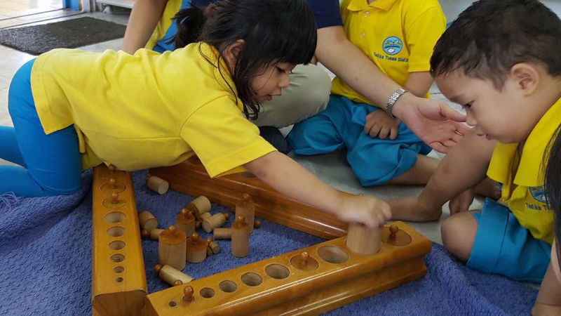 At the same time, children are coached using the local framework of the national curriculum. As both Montessori and the National Curricula are offered, teachers use the strength from both to enhance learning. Hence, children not only receive knowledge at text level, they are further encouraged to think critically and apply their learning to the real world.